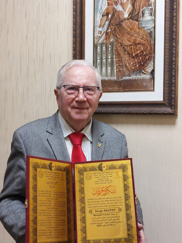 Lors du Congrès organisé à M’Sila (Algérie) les 10 et 11 novembre 2025, Me Serge Pautot, président de LEGISPORT a été honoré.